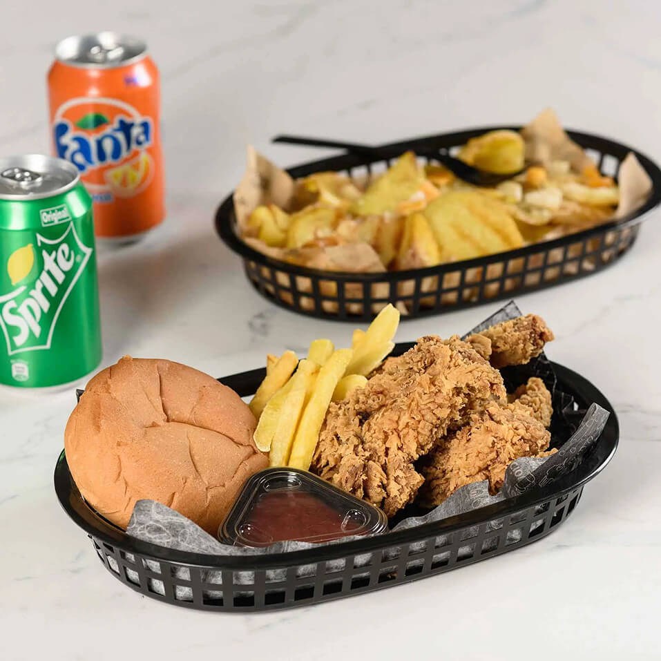 سبد سرو پلاستیکی بیضی ۱۸×۲۸ سانتیمتری مشکی کیچن تک (KitchenTech) گزینهای کاربردی و حرفهای برای فستفودها، رستورانها و کافهها محسوب میشود. این سبد با طراحی مشبک و رنگ مشکی شیک، برای سرو انواع ساندویچ، برگر، سیبزمینی سرخکرده، اسنکها، پیشغذا و نان ایدهآل است و به ارتقای کیفیت سرو و افزایش رضایت مشتریان کمک میکند.